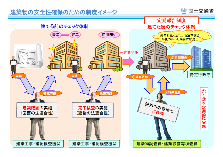 建築基準法第12条に基づく「定期報告制度」は、建築物の安全性を維持するための重要な制度です。管理者・所有者は対象建築物の点検と報告が義務付けられています。